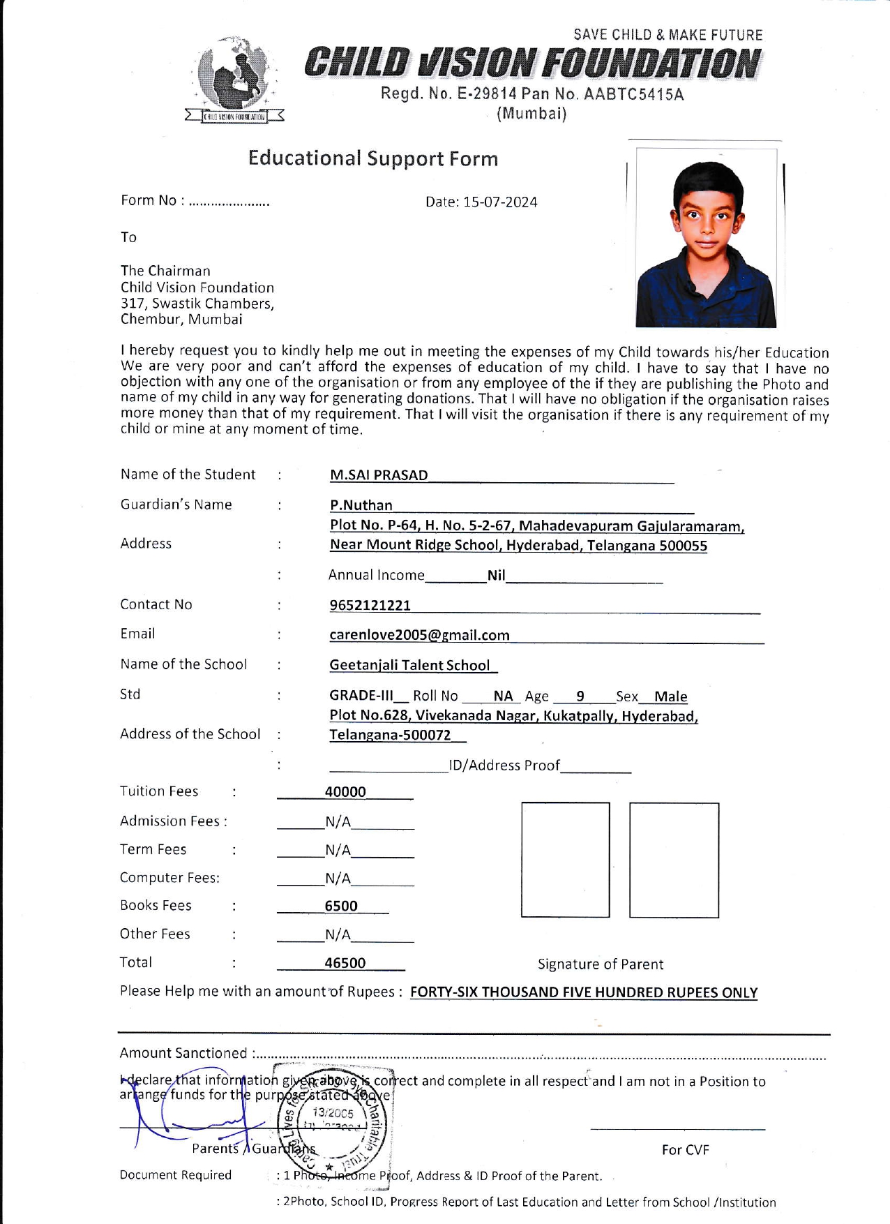 Educational Cost AY 25-26: ₹46,500