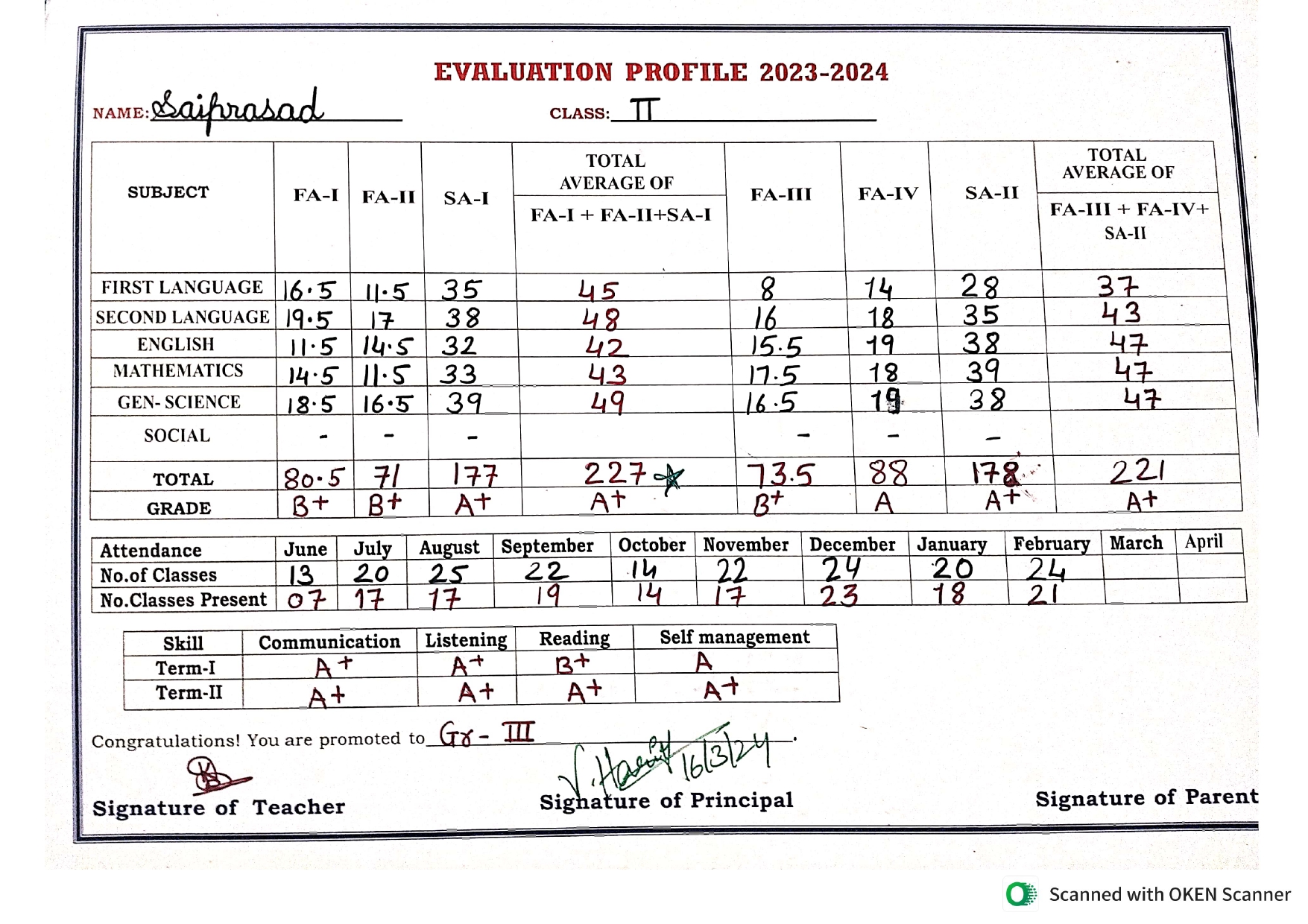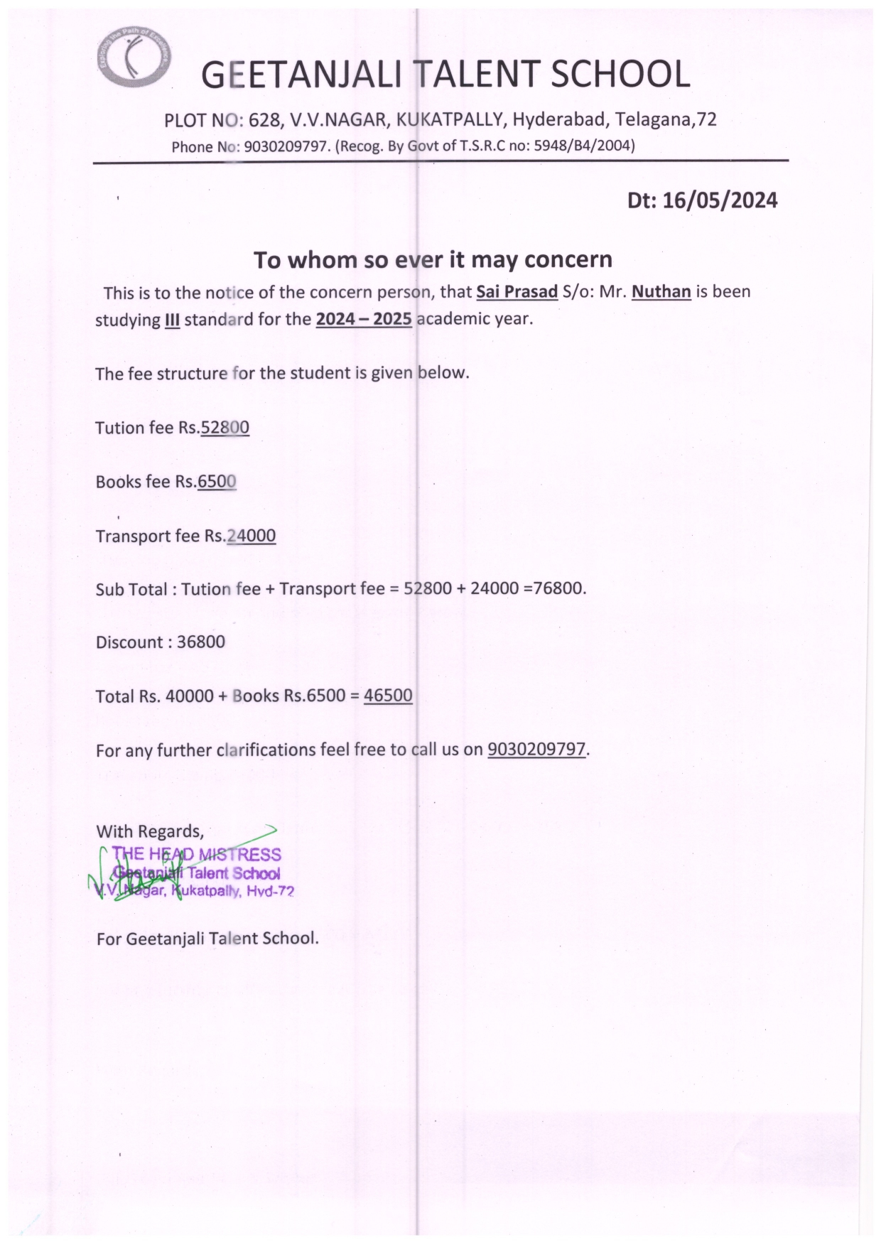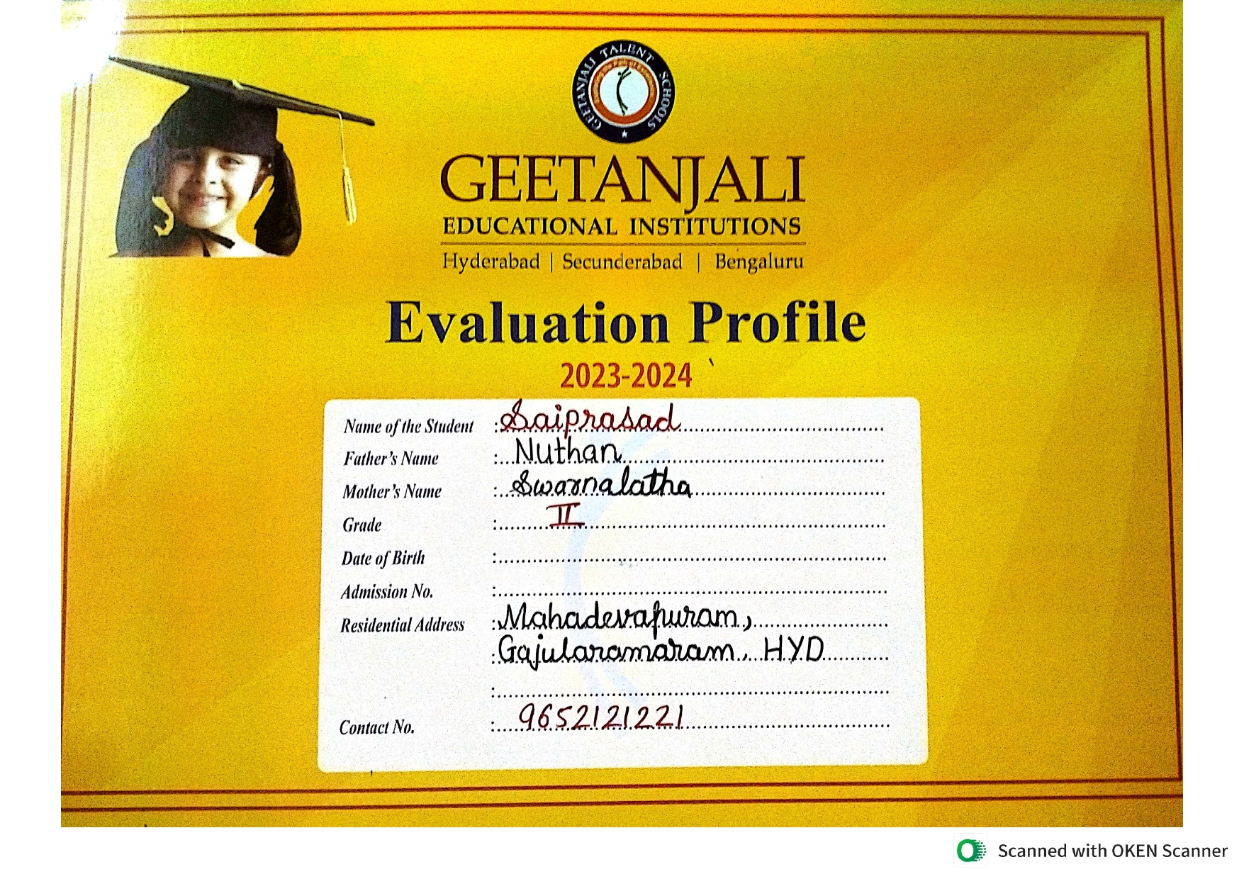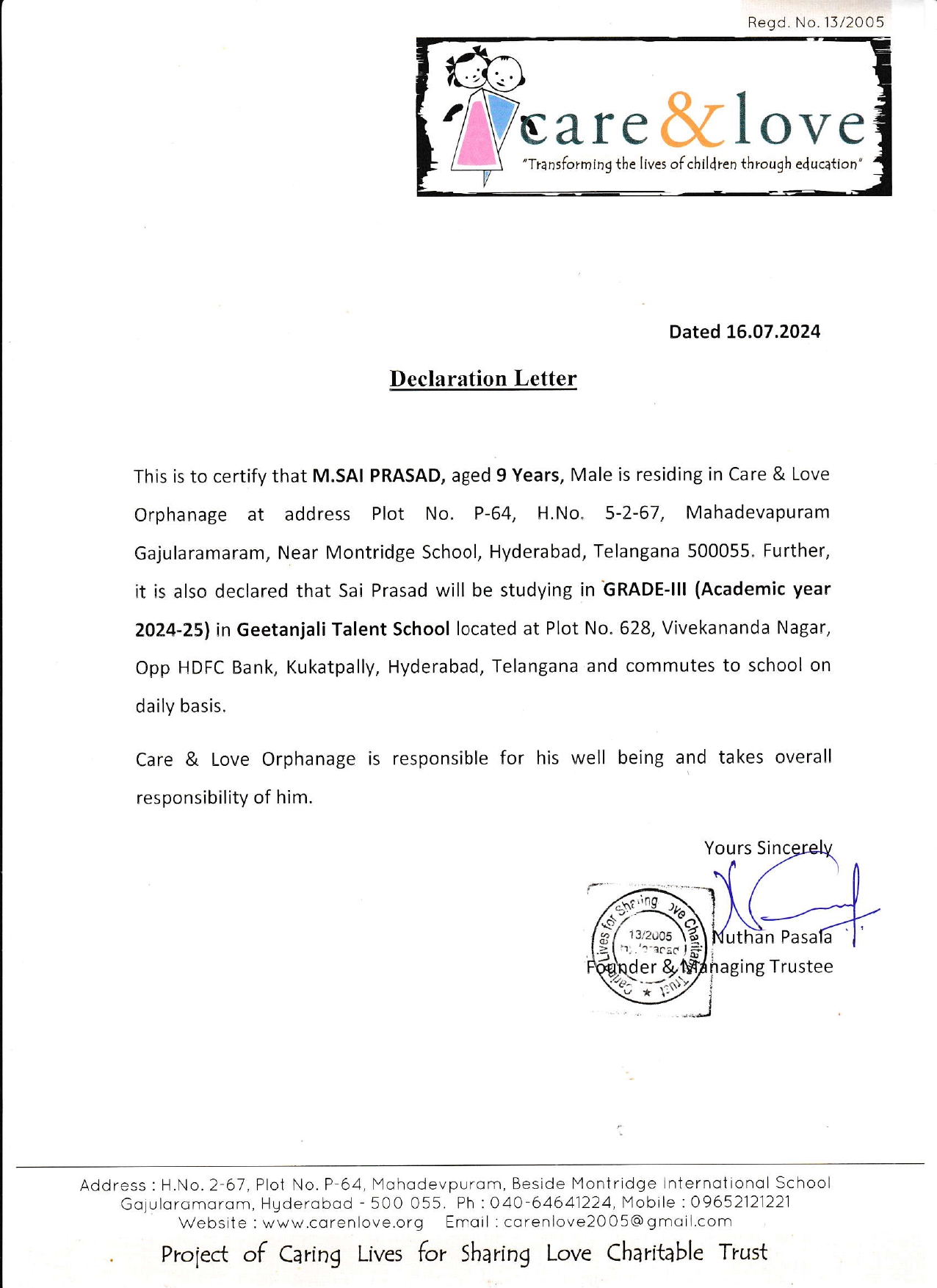 Parent Name : P.Nuthan
