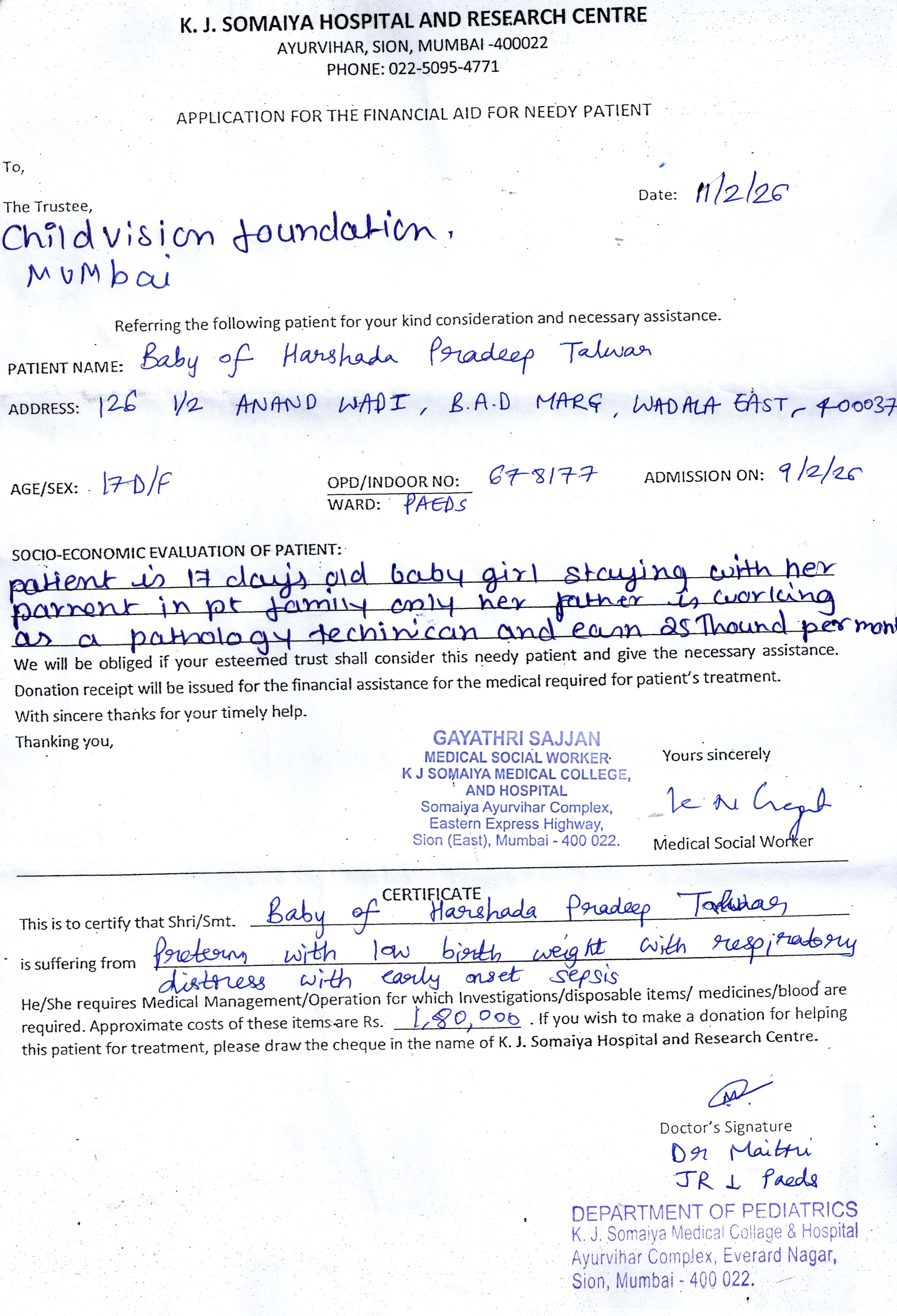 Hospital Name : Somaiya Hospital, Mumbai