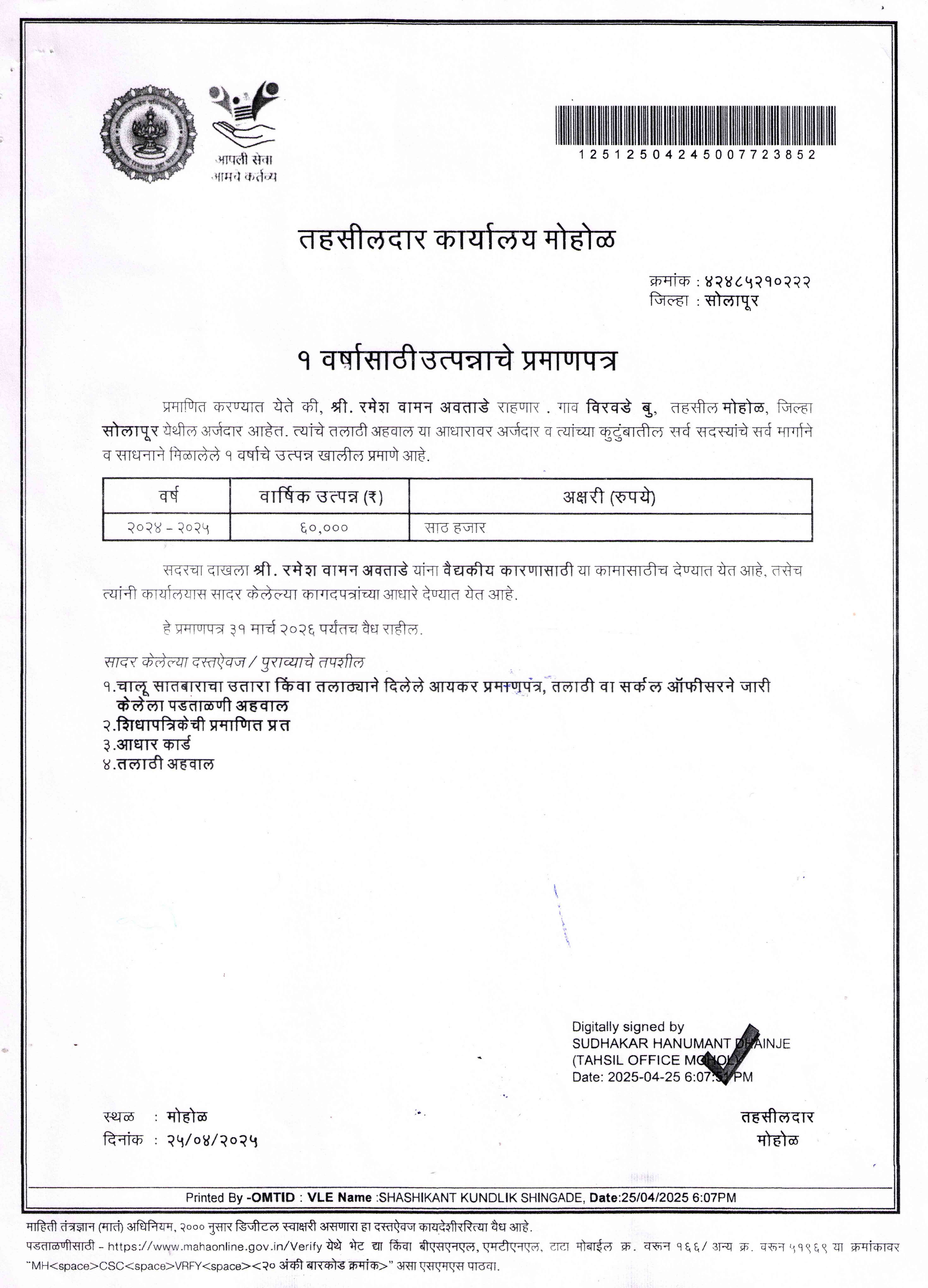 Annual Income : ₹60,000