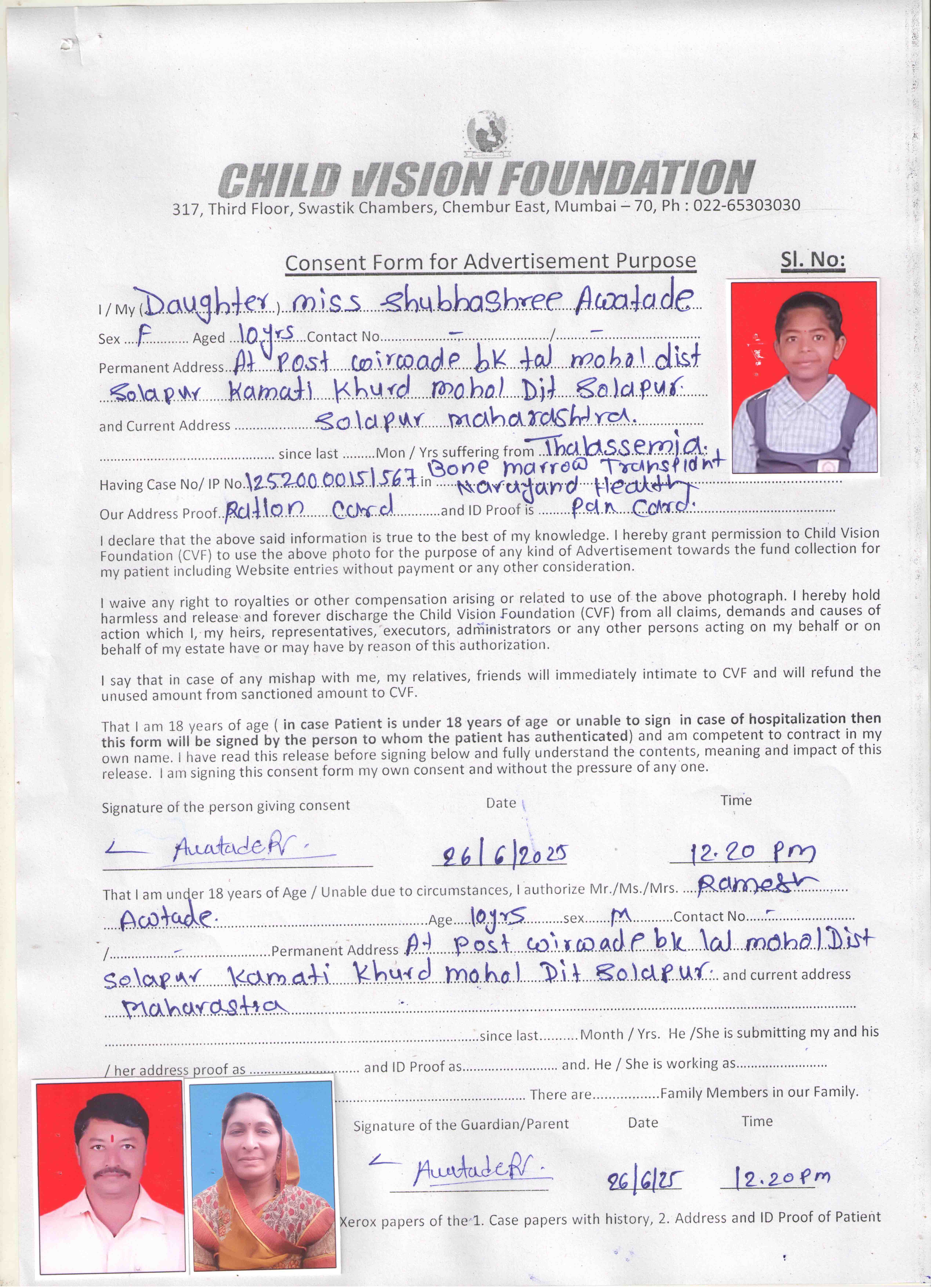 Parent Name : Sachin Awtade